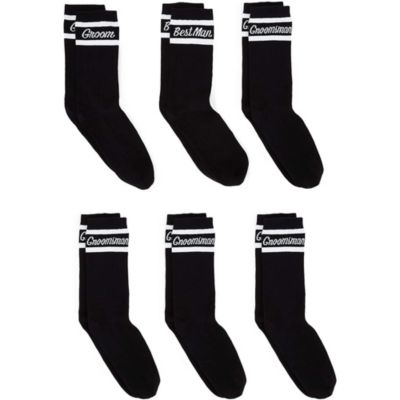 The Best Groomsmen Socks (with Custom Label) - GroomsDay Free Personalization on This Item Get your groomsmen's feet looking the part with a little flare. These fun groomsmen socks with a custom label will hit just the right note with your best men. Let them show a little personality on wedding day when they wear these socks with their tuxedo (or suit). The custom label is included with your order.