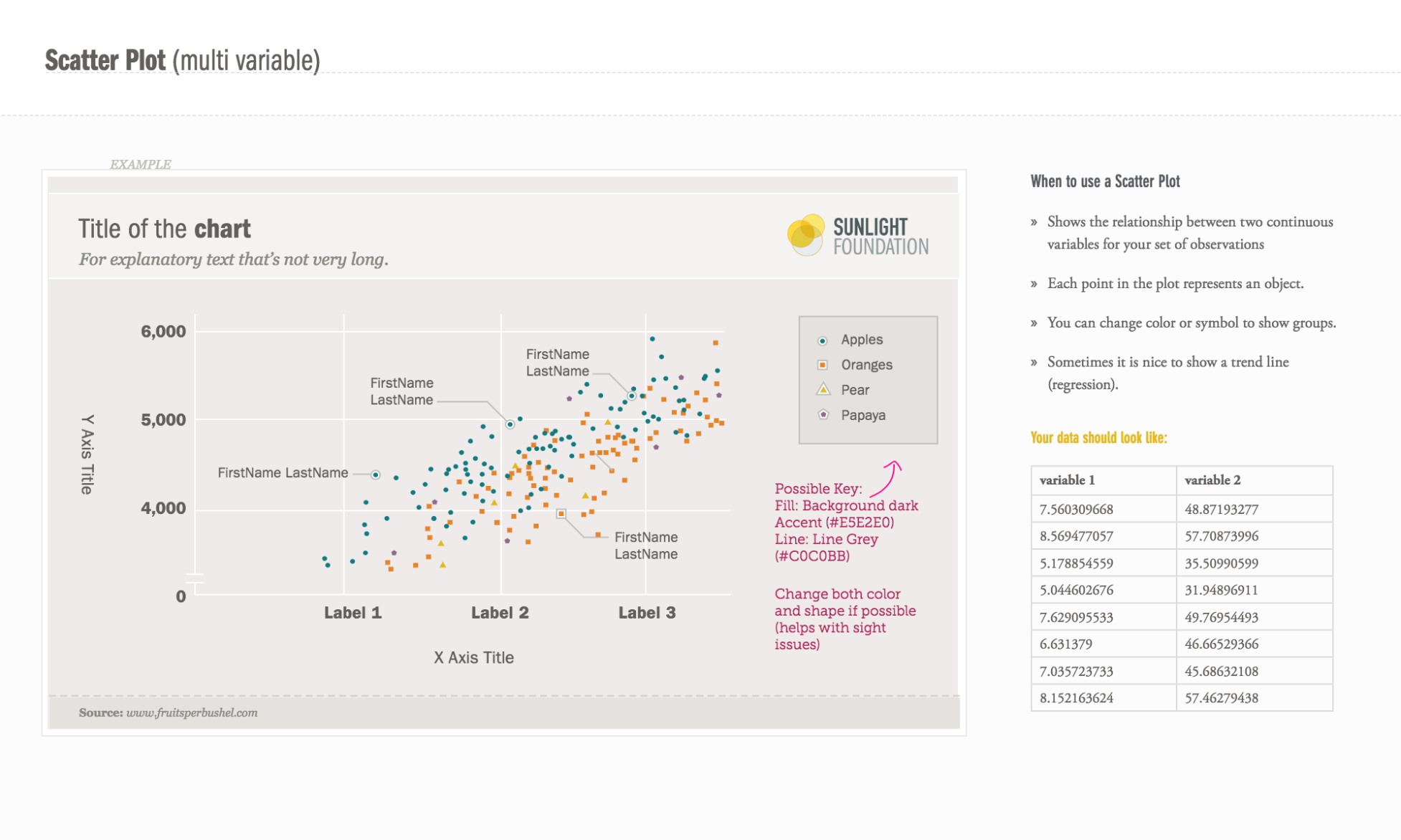 Data visualization with d3 add labels to scatter plot circles. Making a scatterplot with D3.js - O'Reilly Hopefully, some core concepts of D3 are becoming clear: loading data, generating new elements, and using data values to derive attribute values for those elements. Yet the image is barely passable as a data visualization. The scatterplot is hard to read, and the code doesn't use our data flexibly. (Beta Version) - Add Labels to Scatter Plot Circles #16588 - GitHub Data Visualization with D3: Add Labels to Scatter Plot Circles ... d3.js: How to add labels to scatter points on graph svg.selectAll (".dot") .append ("text") .text ("fooLabelsOfScatterPoints"); Mike, from looking at your example, I think I have to append tags onto tags, as opposed to appending tags onto tags. I'll try it out now. [Solved] d3.js: How to add labels to scatter points on graph Mike Robinson, your example helped. For those who are wondering, here is what I did: I removed: svg.selectAll(".dot") .data(data) .enter().append("circle") .attr ...