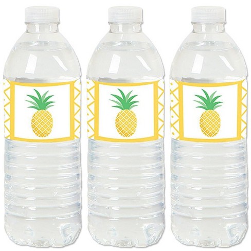 Pineapple Party Water Bottle Labels - Summer Aloha Hawaii Tropical Island Drink Stickers - Set of 12