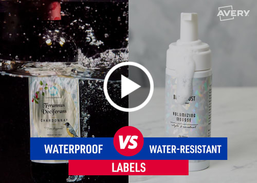 Avery® 35523- Waterproof Labels , 2" x 4", Rectangle, White 35523. Quantity. $ 22.99 Regular Price $ 22.99. Add to Cart. Add to Favourites. Avery Waterproof Labels are secure, all-weather labels that stand up to moisture, tears and scuffs. They are completely waterproof and designed to stay intact even when submerged in water. These white film labels come in the perfect sizes for use on mailing pouches ...